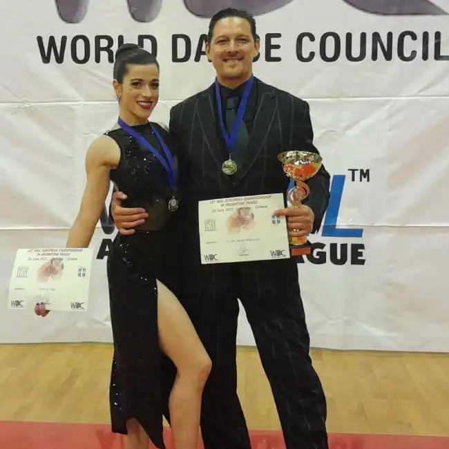 Ariel and Zoe won 1st place in the WDC European Argentine Tango Championship in 2022 in the Argentine Tango Escenario Professionals category. They have created the online school Tango Pro (Tango Project For Professional Teachers) for professional tango teaching guidance, as well as for guiding regular students of all levels. In Athens, they teach Argentine Tango using the “Sistema Dinzel” method, of which they are official representatives.